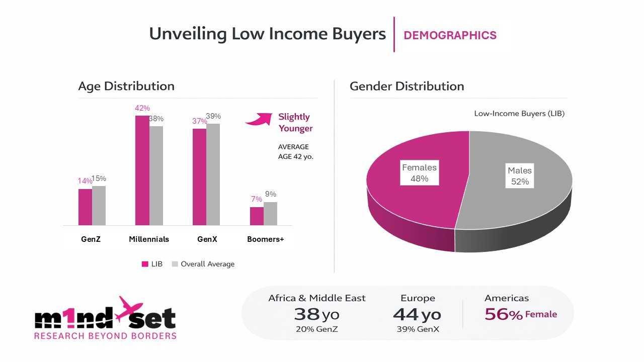 Low Income Buyers (LIBs) are defined by shopping attitudes, not income, reflecting a consistent mindset across markets rather than socio-economic status. They are occasional, highly selective shoppers who buy less often but with clear intent, frequently for gifting. While budgets are limited, LIBs are not strongly price-driven and prioritise relevance, usefulness, and reassurance. They favour trusted global brands, core SKUs, and mid-priced products, with promotions and in-store guidance acting as key purchase triggers.